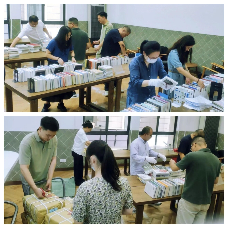 党委教师工作部和图书馆的老师们一同努力,积极布展。