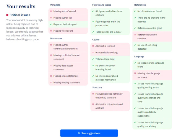 对于需要投稿的论文,Paperpal 提供基础的查重功能和投稿完备度检查,能够提前发现格式和写作上的细节问题,降低投稿过程中因低级错误被拒的风险。