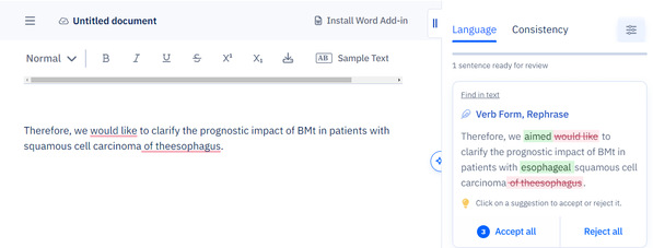 Paperpal能识别并校正稿件中的语法瑕疵,改进令非母语作者下笔乏力的诸多症结,包括主谓一致、单复数、冠词、which/that先行词等等。编辑结果在专业上忠于原文,语言表达则更偏正式。以公开发表的科研文献为对照,编辑逻辑尊重学科语境,无须用户反复指导即有学术发表语言意识。