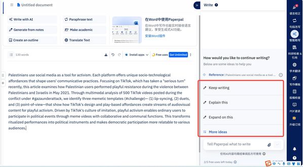 PaperPal提供语言校正功能,检查语法错误、拼写、标点等,帮助做学术写作方面的润色。