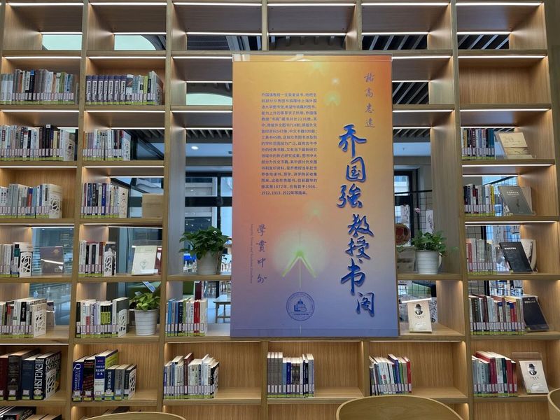 乔教授一生酷爱读书、藏书,2024年因病不幸逝世后,家属姜玉琴研究员遵嘱将其生前部分珍贵藏书捐赠给我校图书馆,此为乔国强教授书阁缘起。设立书阁时有相关藏书共计2236册,包括原版外文图书714册,原版外文复印资料547册,中文图书930册,工具书45册。藏书珍贵,内容涉猎丰富,既有犹太文学、叙事学等专业图书,又有古今中外文史哲各类图书。部分外文书自乔教授赴世界各地读书、游学、讲学时悉心收集,最早版本可追溯至1911年。这批珍贵文献经整理编目后,进一步丰富了本馆馆藏,为师生学术研究提供重要支持,是为“乔国强书阁”。