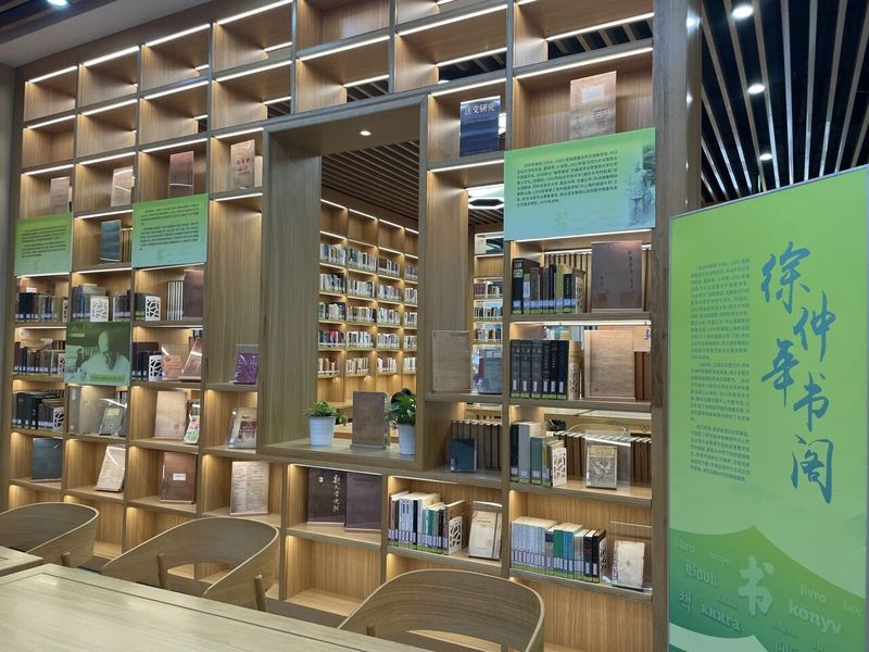 2004年,正值中法建交40周年与徐仲年教授诞辰百年,其子女首次向我校捐赠数百本法语藏书。2024年又逢中法建交60周年与教授诞辰120周年,其子女再度捐赠教授手稿、著作及藏书至我校图书馆。此批书稿大大丰富了馆藏资源。在经过一系列整理、编目,精选扫描及复制后,图书馆精心布局空间、设计展陈,将徐仲年教授的部分著作、藏书及手稿以新形态展示给全校师生读者,是为“徐仲年书阁”。
